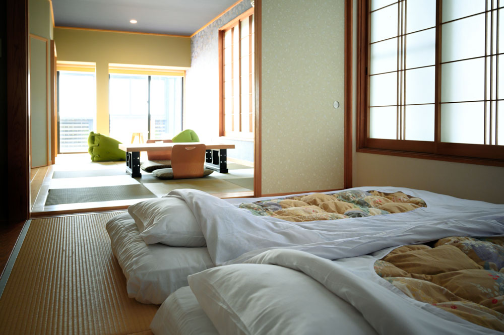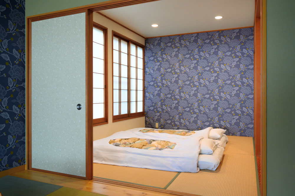 畳敷きの寝室にお布団を敷いた純和風の寝室です。