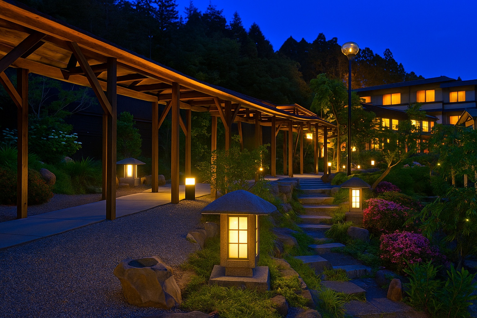 ほのかな灯りに照らされた小さな玄関が、お客様を控えめにお出迎えいたします。