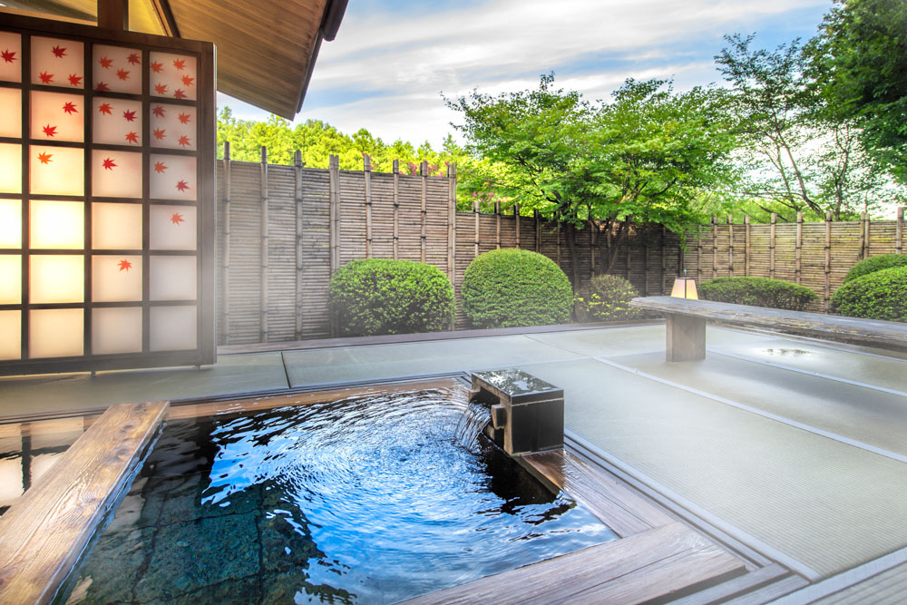 和室から露天風呂・専用の庭園まで開放的に望めます。