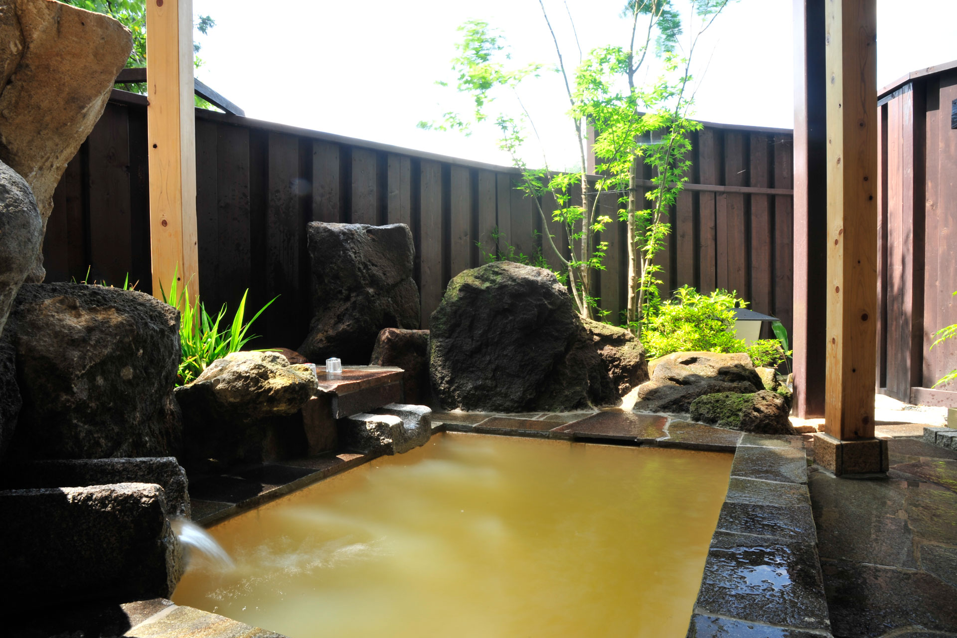 まるで森にいるように感じるほど開放的な、岩に囲まれた露天風呂です。